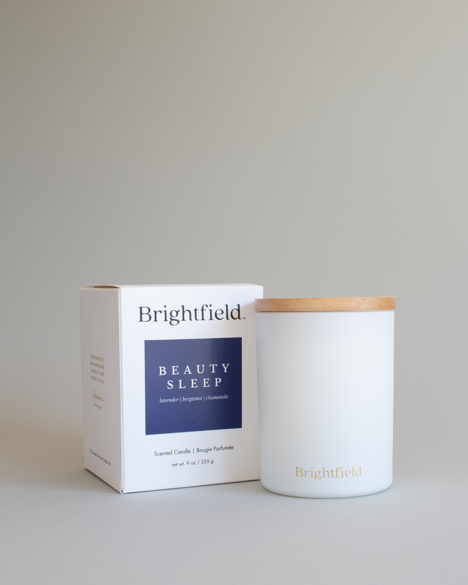 Scent Notes: Lavender, Bergamot, Chamomile, Cedar Unwind with Beauty Sleep, a soothing candle with notes of lavender, bergamot, chamomile and cedar. Studies have shown that each of these comforting scent notes help promote sleep quality, calmness, and reduce stress. Burn Beauty Sleep as part of your nighttime routine or during the day anytime you want to feel calm.