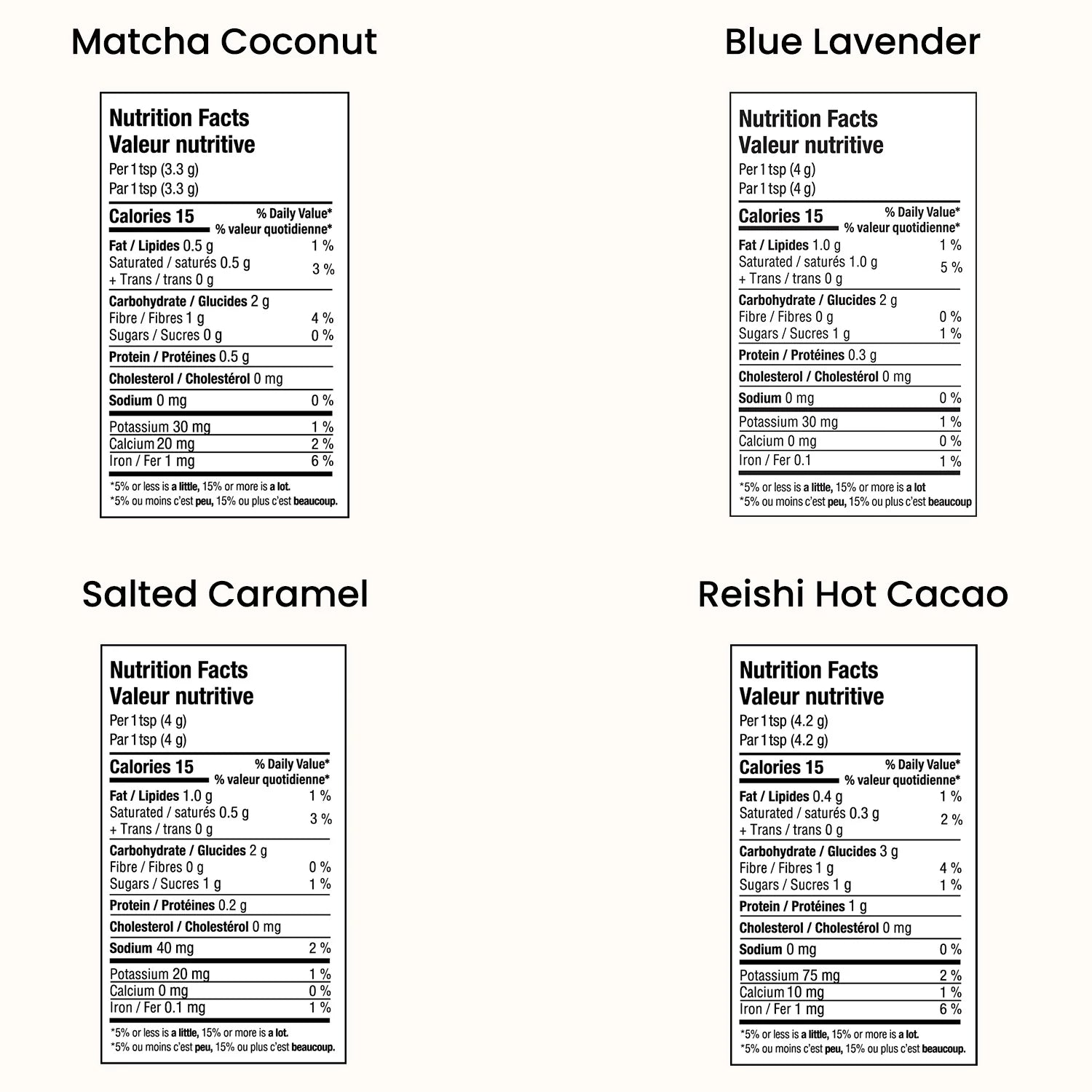 Can’t decide? A bundle of the crowd faves is a great place to start. Familiar flavors, boosted by superfoods and without compromise. From morning to night, these thoughtfully formulated blends will help you energize, soothe, digest, and unwind — and your tastebuds will be happy too.