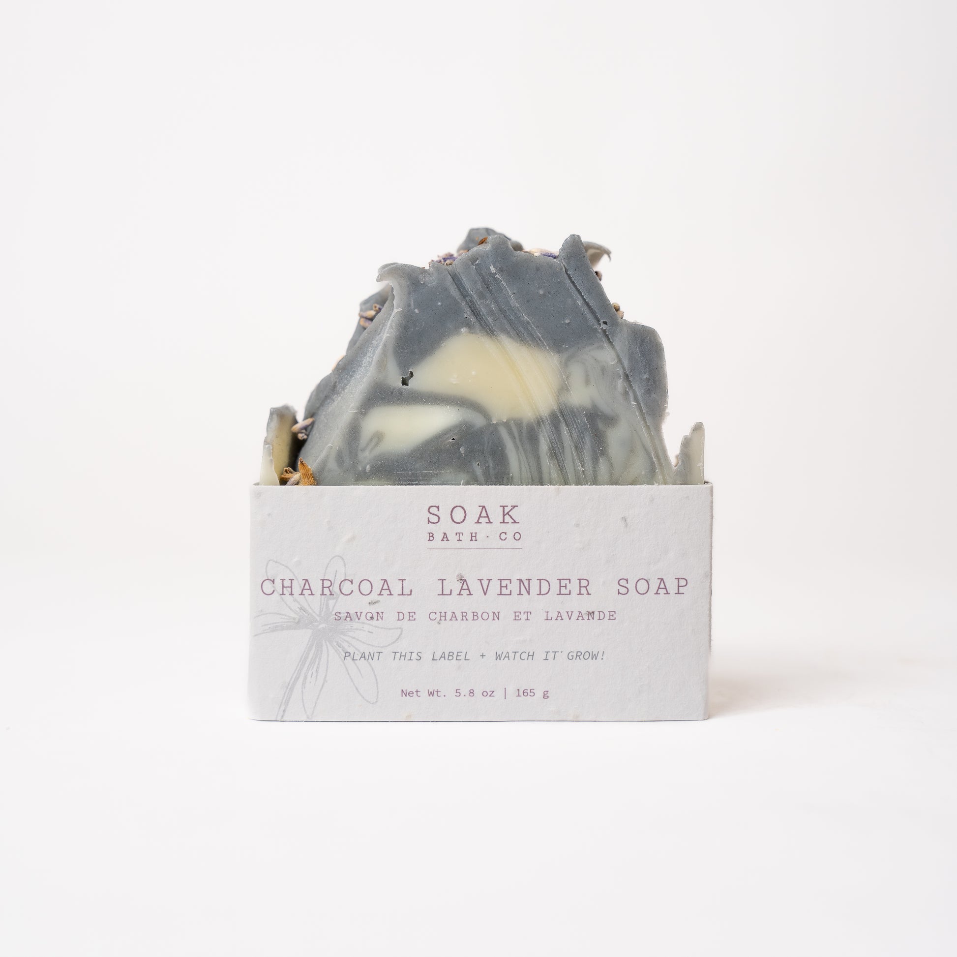 Looking for a post workout bar to cleanse those pores? Skin on the oily side and trying to manage breakouts? The combo of lavender essential oils with activated charcoal is going to give your skin the clean it needs. Activated charcoal helps to pull impurities from the skin and helps to clean out those pores while lavender helps to soothe the skin. This gorgeous bar is completely zero waste and sustainable, the label is made of seed paper so you can plant the label + it will grow into flowers!
