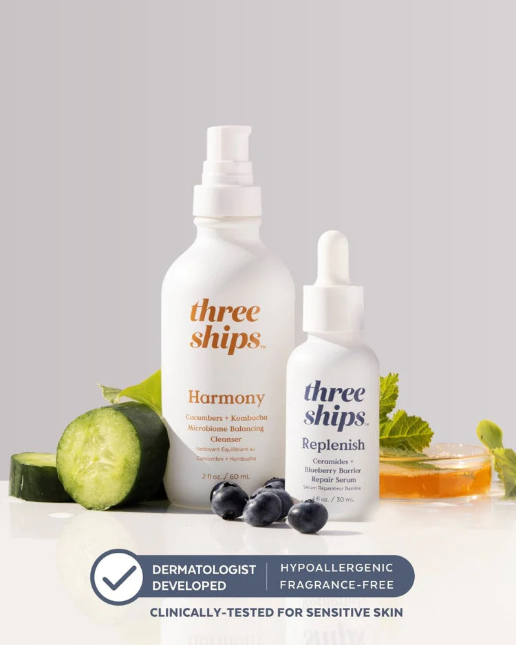 Developed with Board Certified Dermatologist Dr Sandy Skotnicki, this duo works together to restore a healthy skin barrier. First, gently cleanse and melt away makeup with a comforting milky cleanser, containing Kombucha to support a healthy skin barrier and Cucumber Extract to soothe signs of sensitivity. Follow with the barrier repair serum, which has barrier-building Ceramides and plant-based antioxidants to boost skin’s natural defenses.