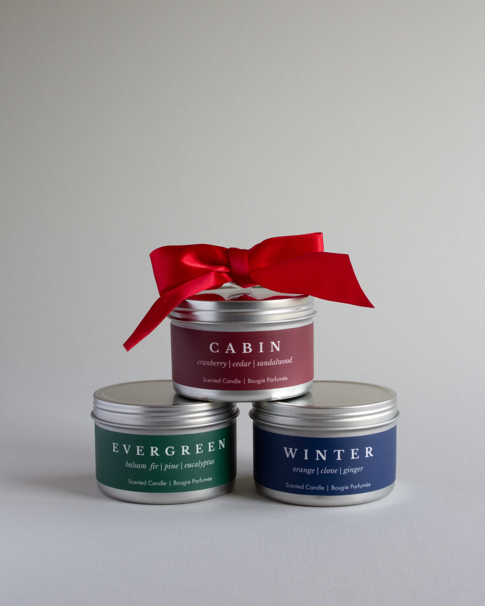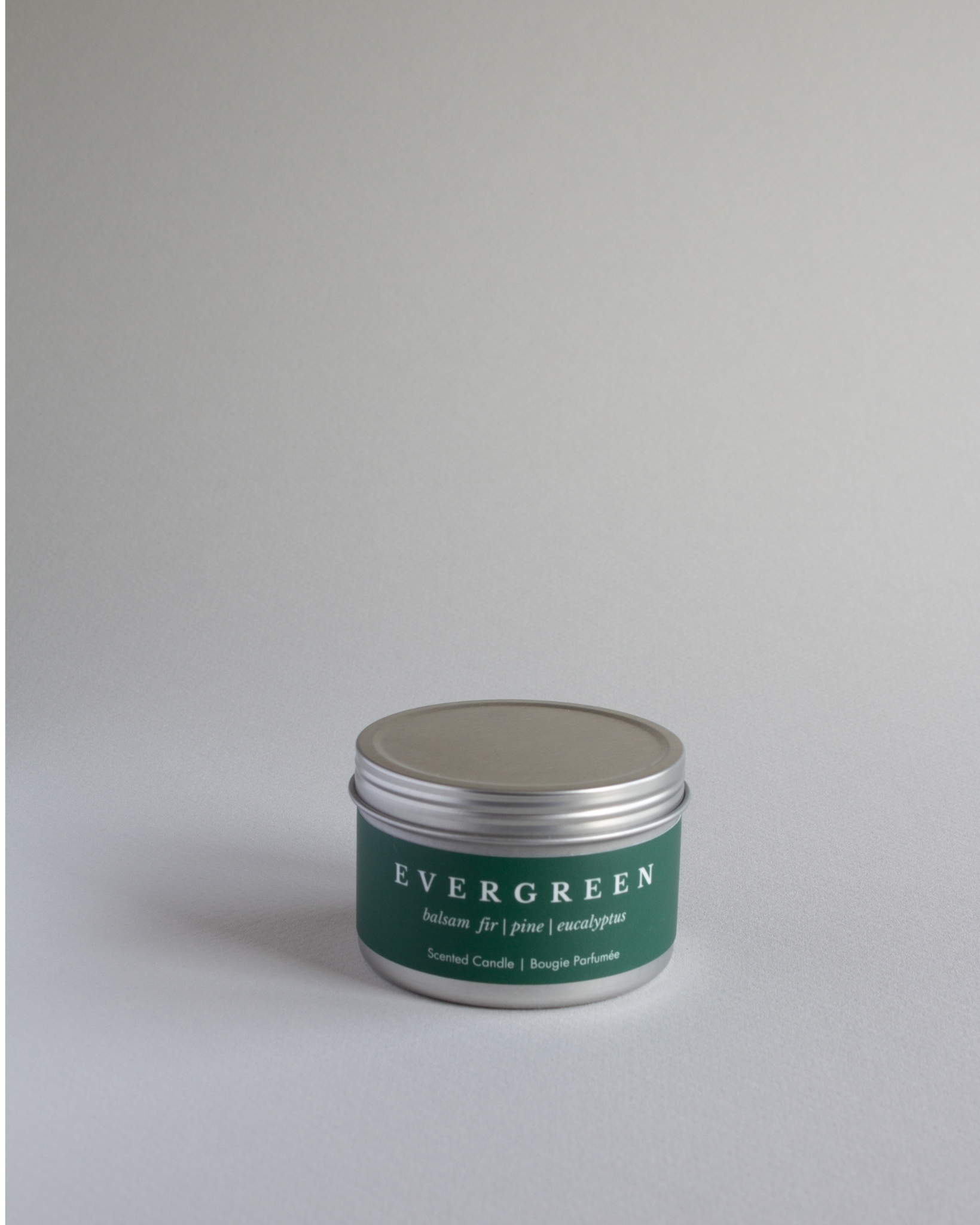 Scent Notes: Balsam Fir, Pine, Eucalyptus Our Evergreen Mini Candle smells like a real Christmas tree. It will transport your customers to a beautiful Christmas tree farm, with the grounding scent of balsam fir, pine, and eucalyptus. Only available for a limited time, our Evergreen Mini Candle is the perfect stocking stuffer. Why You Will Love It: - Uplifting woody scent that smells like a real Christmas tree - 1 candle = 3 meals (we donate $1 from every candle sold to Second Harvest) - Includes a twist lid to preserve the candle scent and protect from dust Net weight: 3 oz/85 g
