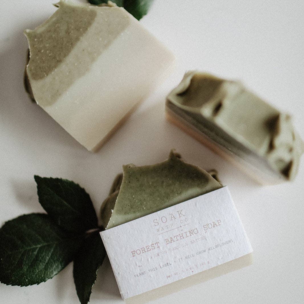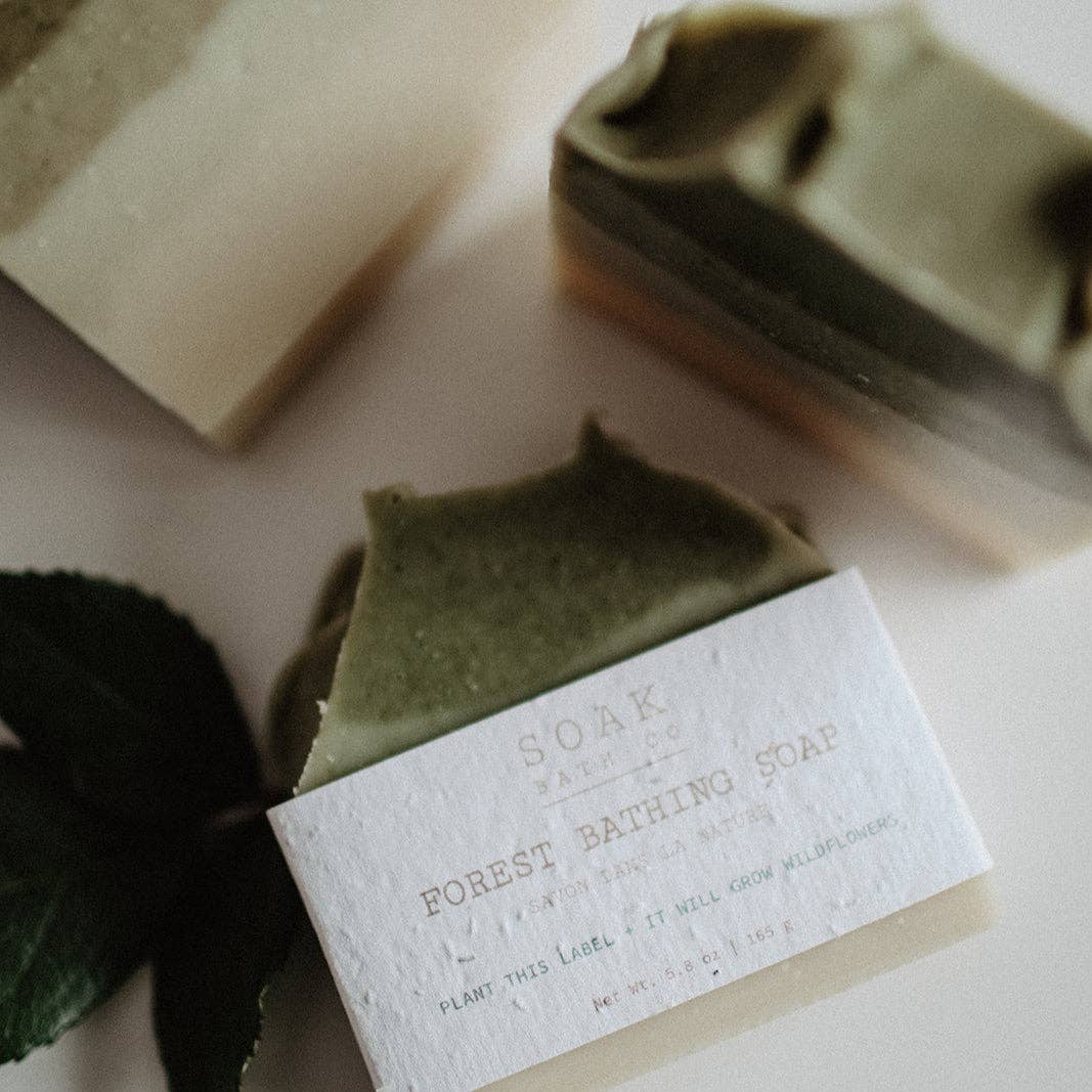 Inspired by the mindful practice of forest bathing, this soap bar was made for the nature enthusiast, the avid hiker, and anyone who finds peace among the trees. Whether you're exploring the backwoods or simply craving a breath of fresh air, Forest Bathing Soap bar by SOAK Bath Co brings the tranquility of the forest right to your shower.