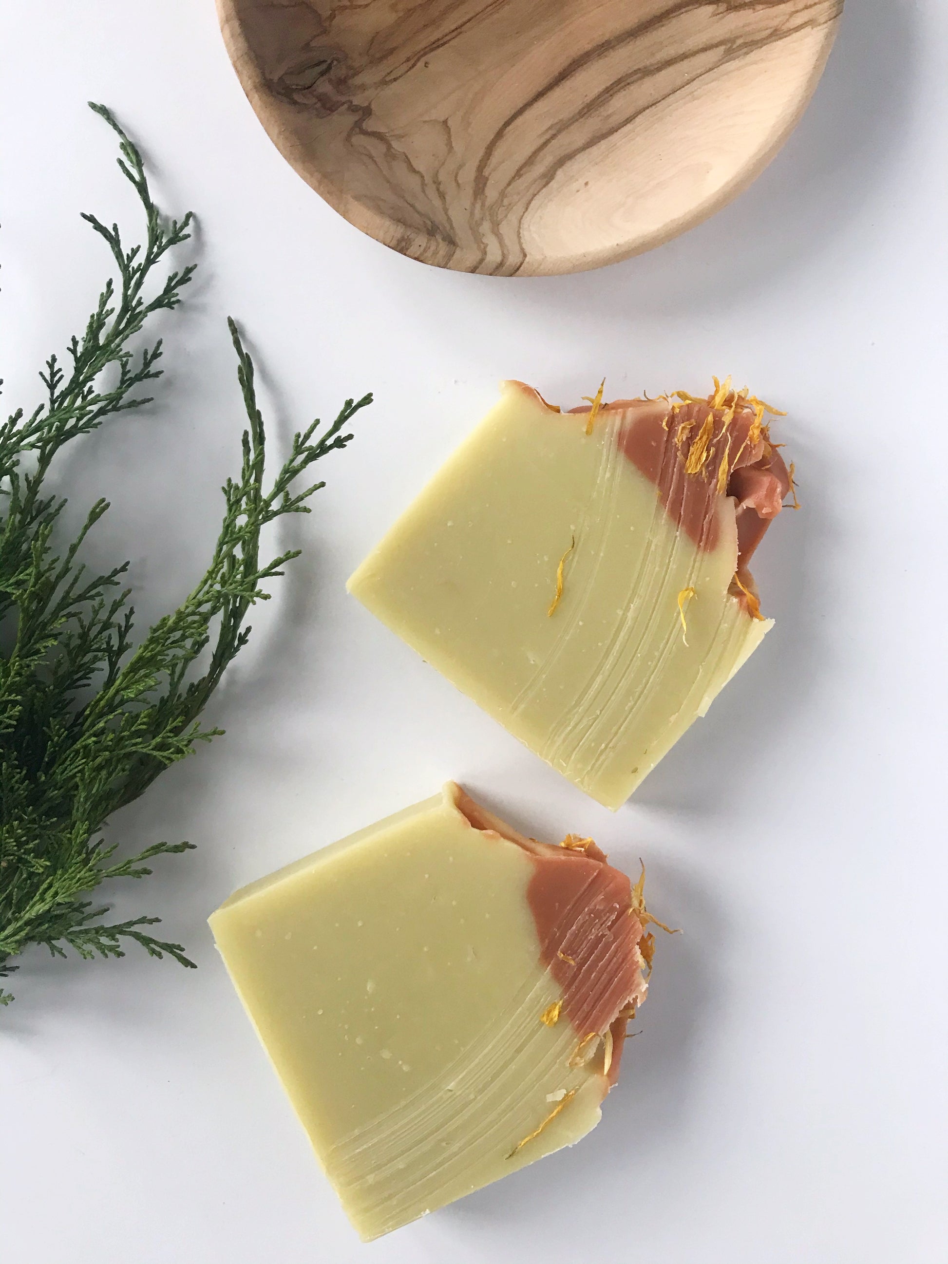 Ingredients: Olive Oil Water Coconut Oil Shea Butter Hemp Seed Oil Castor Oil Lye Patchouli Essential Oil Red Clay Calendula Petals