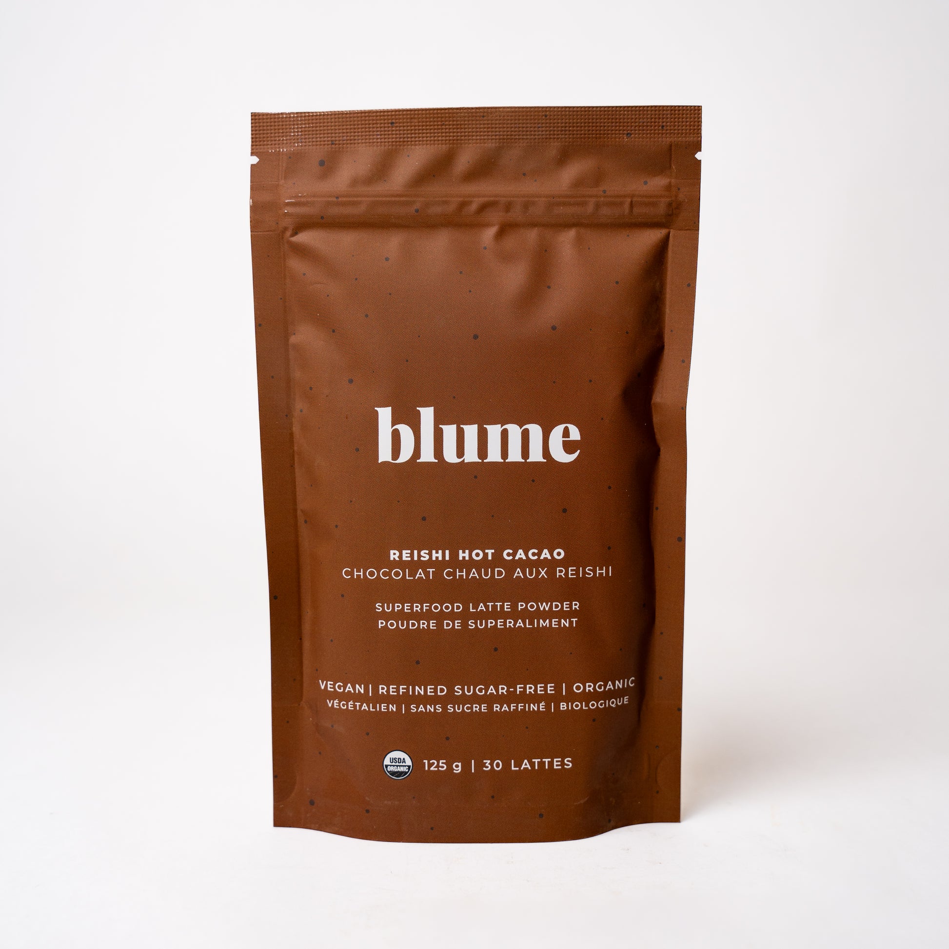 Adult hot chocolate. Creamy, dark hot chocolate lightly sweetened and heightened with reishi. Designed to promote deep sleep, relaxation and de-stressing. The perfect after dinner drink. 30 servings per bag, works perfectly on a retail shelf or on a café menu.