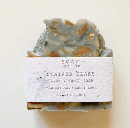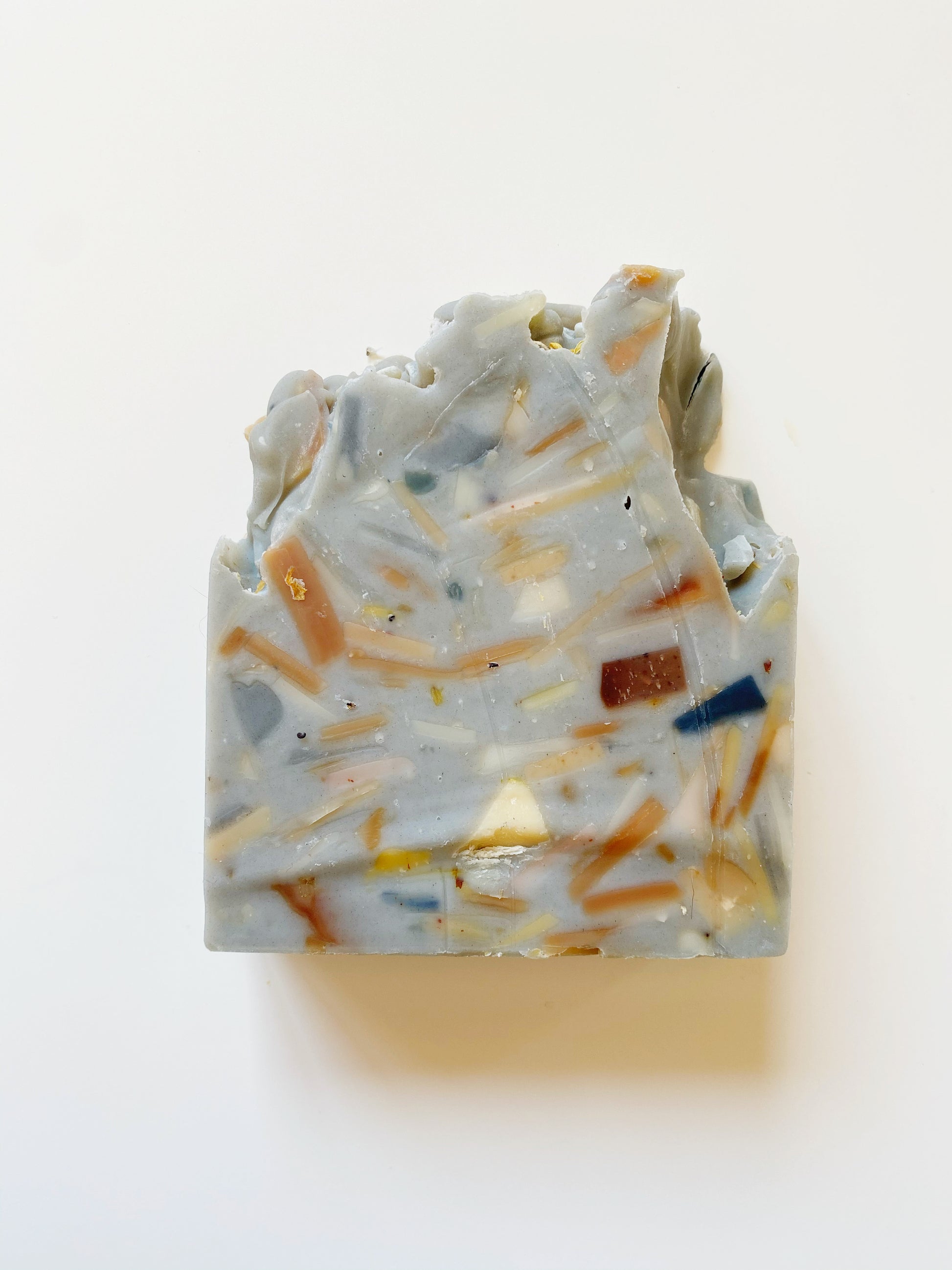 The Stained Glass Soap Bar was designed as a fun way to repurpose soap scraps that would otherwise be seen as waste. Stained Glass includes bits and pieces of soap from our signature soap bar line that are cut into smaller pieces and incorporated into a charcoal soap bar base. This creates a mosaic of truly one-of-a-kind soap bar pieces, each bar unique from the next and each batch truly unique from the other.