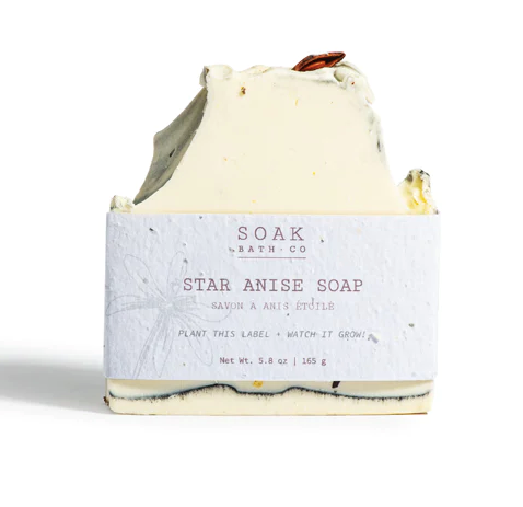 The stunning Star Anise Soap Bar by SOAK Bath Co. Infused with the sensual aroma of Star Anise Essential Oil, this bar smells just like black licorice. Lovingly detailed with charcoal lines for a classic, elegant look, this soap bar is simple yet beautiful. Its minimal, yet sophisticated design makes it a great gift to give during the winter season!