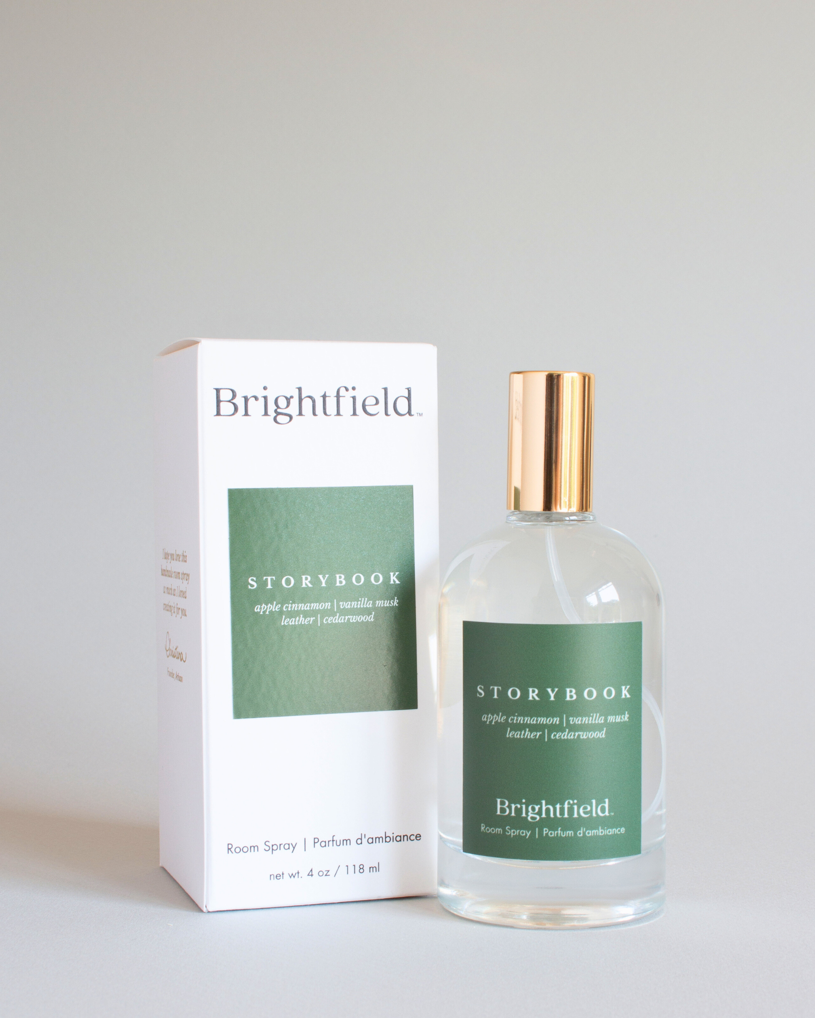 Scent Notes: Apple Cinnamon, Vanilla Musk, Leather, Cedarwood Step into a timeless fairytale with Storybook, a room spray that captures the nostalgic magic of curling up with a beloved leather-bound book.